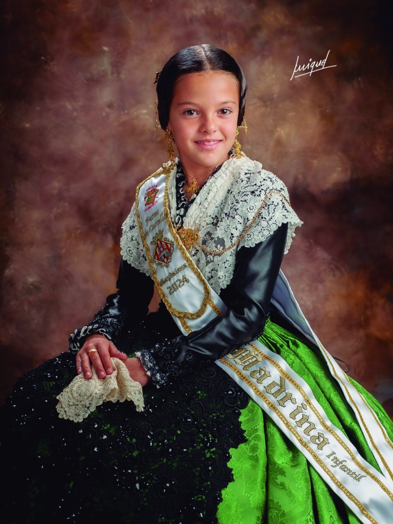 «Isabel, una niña de 10 años llena de vitalidad y alegría, embrujando a todos con su inocencia, asume el rol de madrina infantil de la Gaiata 19. Su risa contagiosa y entusiasmo inquebrantable iluminan cada rincón de la fiesta, recordándonos que la magia de la niñez es el ingrediente perfecto para un ciclo festero inolvidable. ¡Acompaña a Isabel en este viaje mágico mientras se convierte en la chispa que enciende la Gaiata 19 en el Ciclo Festero 2024!»